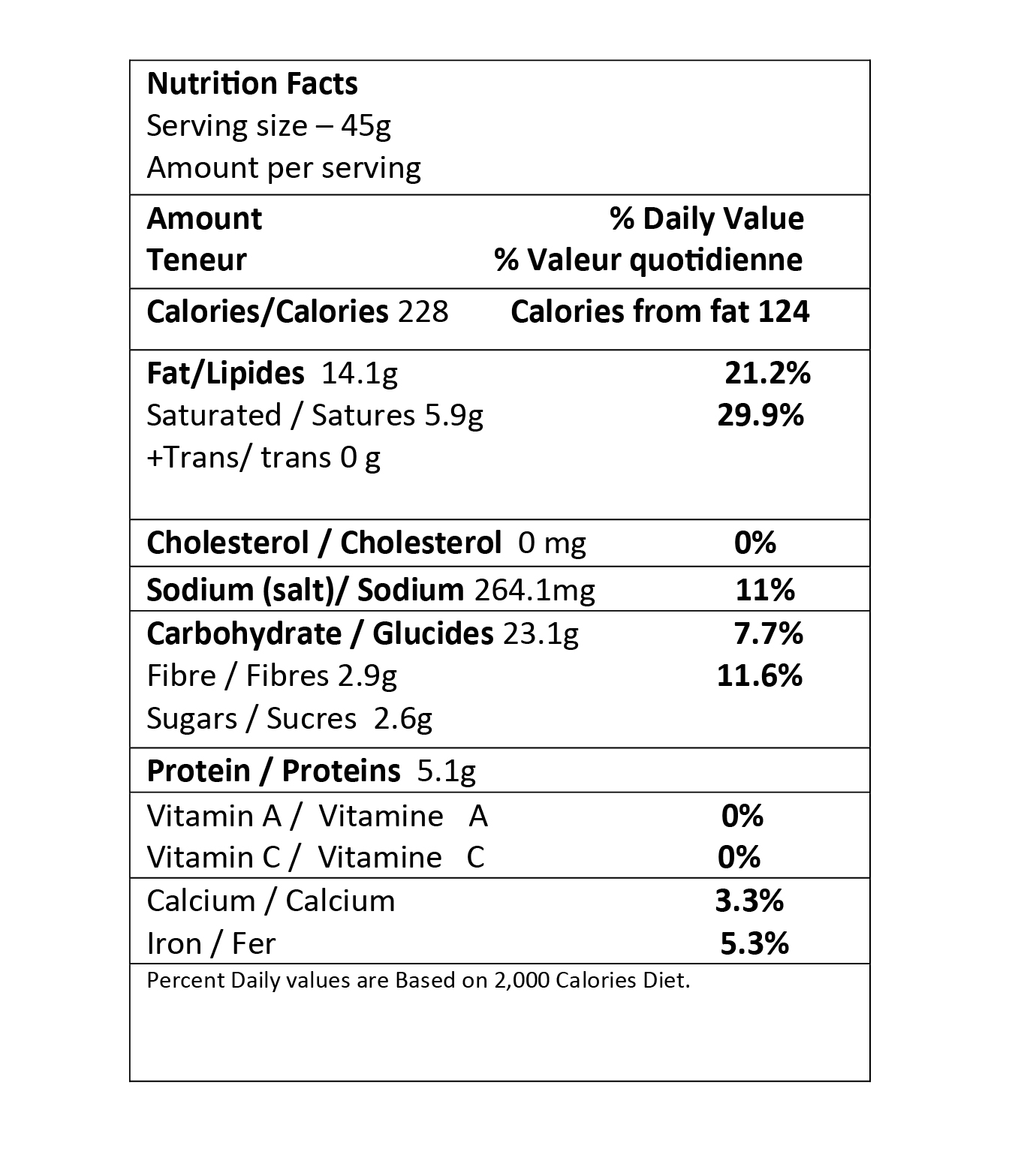 Ingredients – Gram flour (65.23%), Veg Refined Palmolein Oil (16.38%), Green Peas, Chickpeas, Black Pepper, Red Chilly Powder, Turmeric, Caraway Seeds, Asafoetida, Iodized Salt(1.54%)